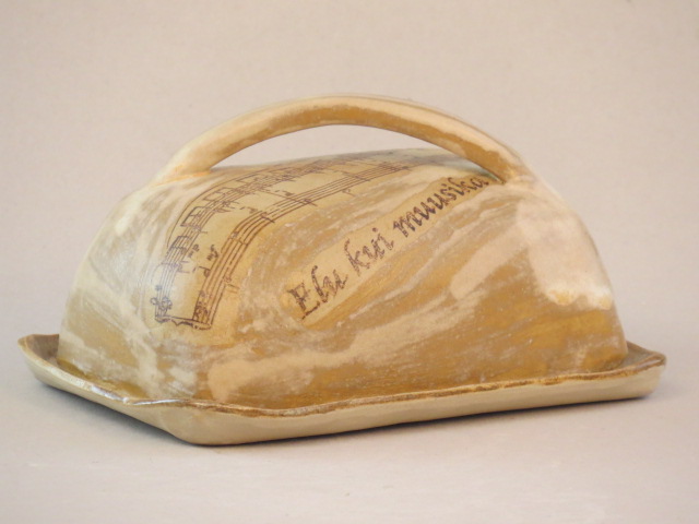 MU18 Võitoos sarjast "Elu kui muusika" käsitööna valmiv kõrgkuumus -keraamika. Võib pesta ka nõudepesumasinas. Mahutab suure paki võid, sobib ka teiste toiduainete hoiustamiseks. Pilt on illustratiivne. Iga võitoos on ainulaadne käsitöö, teksti paigutus võib olla erinev.