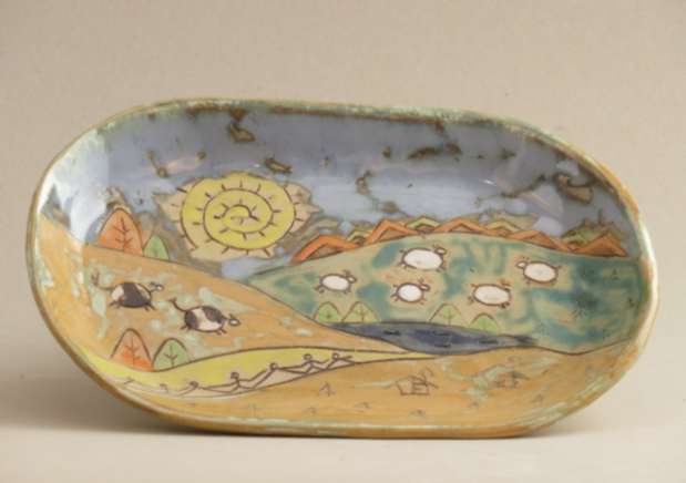 Mõnusa suurusega pikergune taldrik.