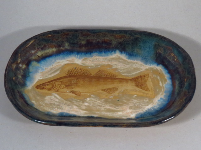 maagilistes, tumesinistes värvivarjundites äärisega kalataldrik.
