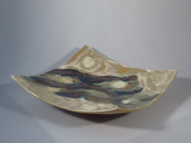 Effektne, kaarjas, nelinurkne, jalgadel meredekooriga vaagen. Uhke kaunistus igal laual. Saab kasutada koos kausiga dipivaagnana.